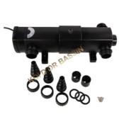 AquaForte introduit une nouvelle série d'unités UV-C avec des lampes PL. Le boîtier est doté d'une connexion spéciale "quick lock" au verre de quartz, facile à nettoyer. IL est équipé de 2 raccords, : embouts de tuyau 20/25/32/40mm et un voyant UV. Les lampes de 18/24/36 watts ont un intérieur spécial en forme d'hélice pour que l'eau soit en très bon contact avec les rayons UV-C.
